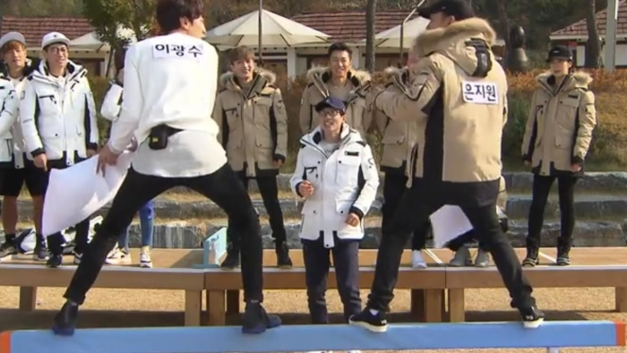 四方队伍分别派出代表,进行KO制独木桥PK,夺取单挑王称号。