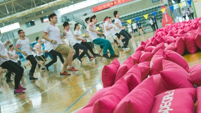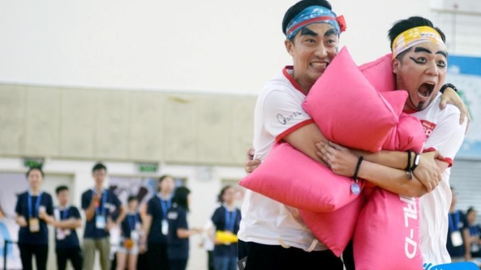 全场分为4组,各自为营,轮流将枕头投入其他阵营中,时间结束,阵营枕头最少的2组获胜…